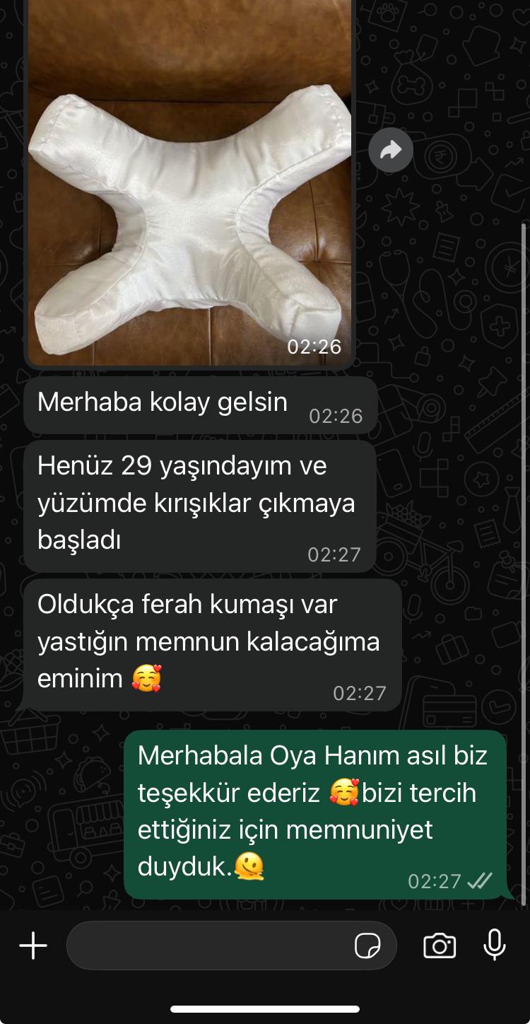 Sıradan yastıkların aksine, kırışıklık karşıtı yastığımız cildinizi rahat ve gerilimsiz tutarak, yüzünüzün genç, dinlenmiş ve kırışıksız kalmasını sağlar.
